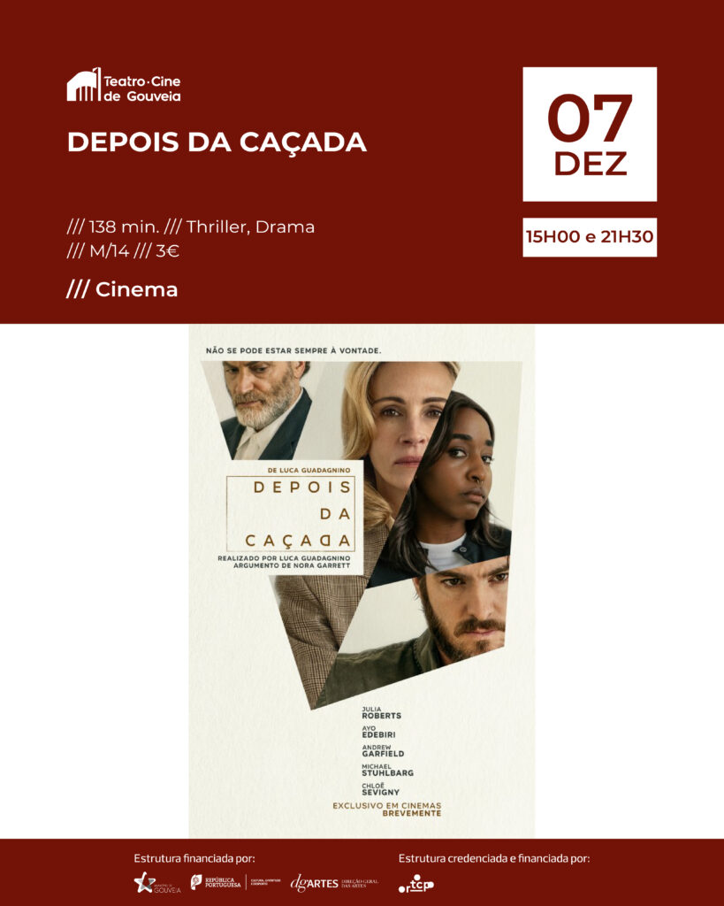 /// CINEMA: Depois da Caçada 07 de dezembro | 15h e 21h30 | 3€ Alma Imhoff, uma professora de filosofia talentosa e ambiciosa está prestes a obter o lugar que o seu trabalho merece. Subitamente, Maggie, uma das melhores alunas de…