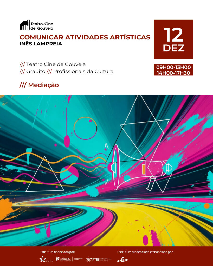 /// Mediação Língua Solta _ Ciclo de Formação: Comunicar atividades artísticas 12 de dezembro | Teatro Cine de Gouveia | 9h00 – 13h00 | 14h00– 17h30 Formadora: Inês Lampreia Sinopse: Nesta oficina, vamos explorar maneiras de tornar os projetos culturais…